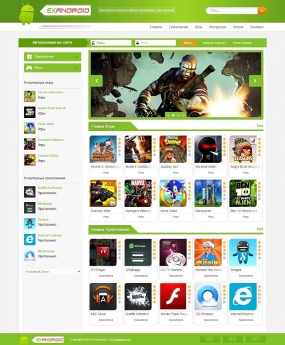 ExAndroid — это высококачественный адаптивный шаблон для Android-ресурсов, выполненный в двух цветовых вариантах: синем и зелёном. Он обладает привлекательным дизайном и хорошо продуманной структурой, что делает его удобным для использования. Шаблон прост в установке и настройке, не требует сложных манипуляций. Этот шаблон идеально подходит для сайтов, посвящённых играм и приложениям для Android. Для таких ресурсов важно, чтобы сайт одинаково хорошо отображался на компьютерах и мобильных устройствах, и ExAndroid полностью отвечает этим требованиям, обеспечивая оптимальный внешний вид на любых экранах.Бесплатный