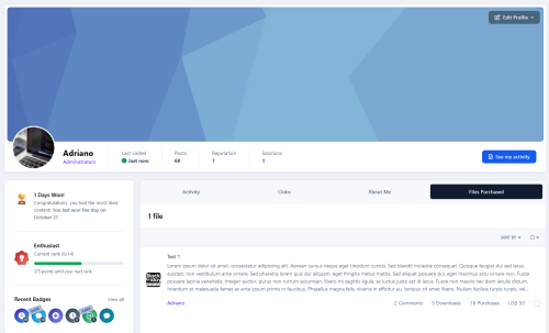 Это приложение предоставит более быстрый доступ ко всем файлам, купленным определенным участником, посетив его профиль. Вкладка профиля будет видна только администраторам.