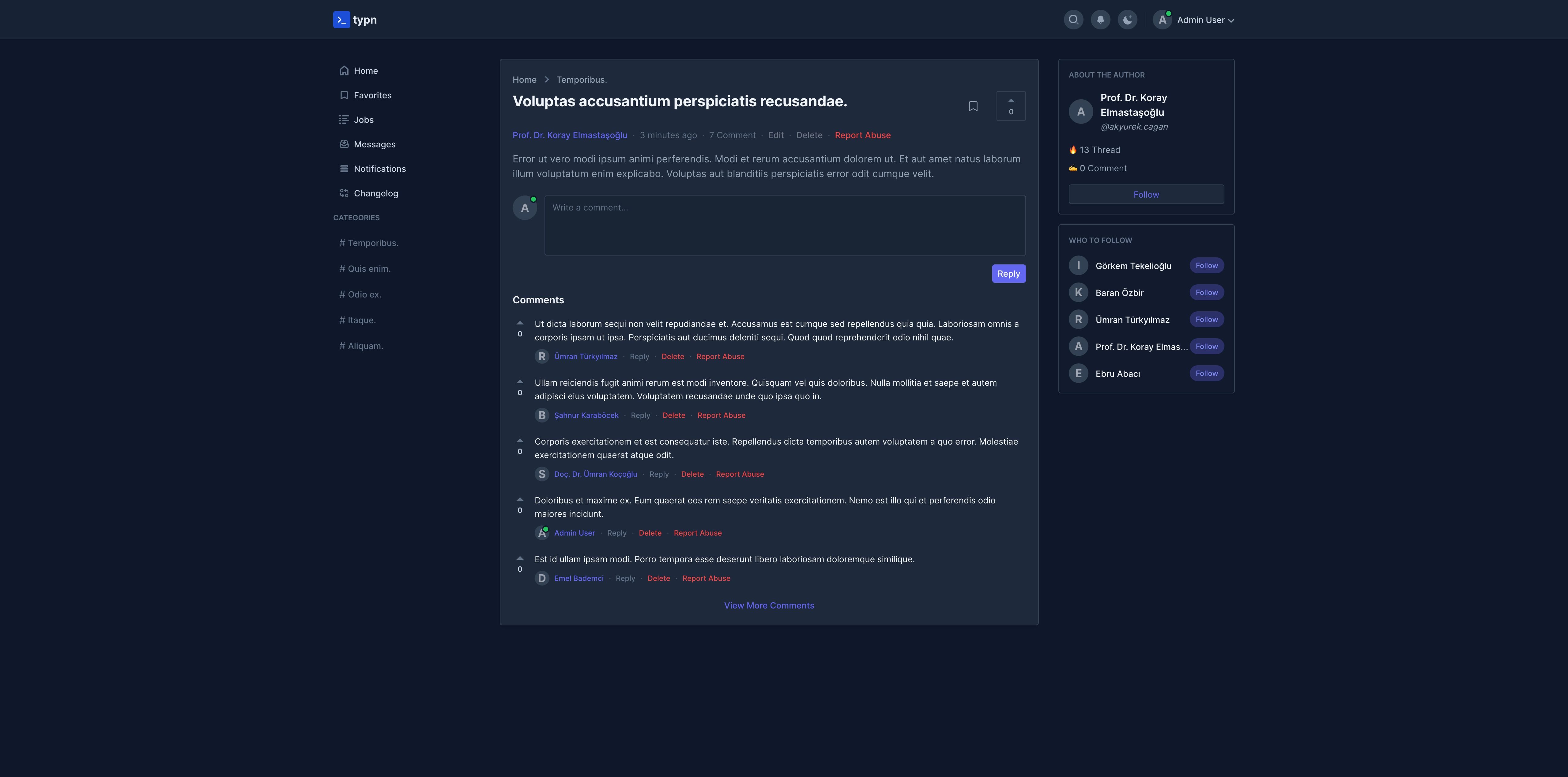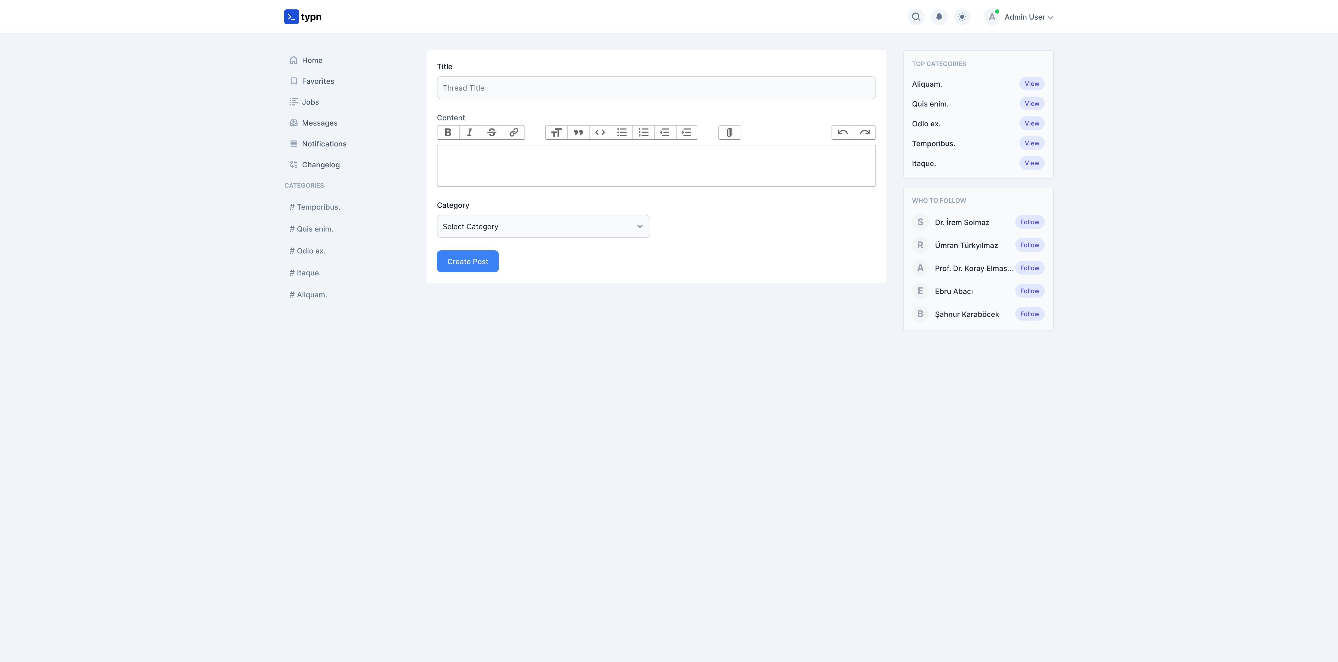 Форумы и обсуждения: Typn поддерживает создание форумов, где пользователи могут открывать темы для обсуждения, оставлять комментарии и участвовать в общении.