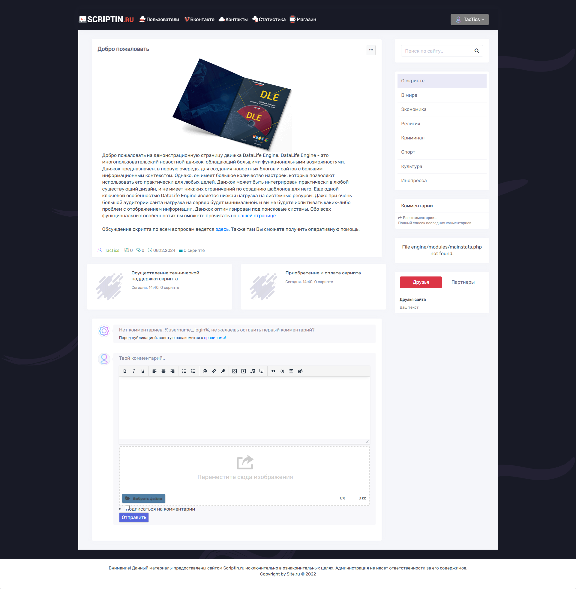 Шаблон адаптирован под версию скрипта DLE 17.2 нашей командой. Иконки на сайте загружаются локально, что повышает скорость загрузки и упрощает процесс установки на хостинг. Кроме того, шаблон обладает высокой кроссбраузерностью, поддерживая работу на всех популярных браузерах, а также на мобильных устройствах, что делает его универсальным выбором для создания разнообразных веб-проектов в сфере новостей и блогов.