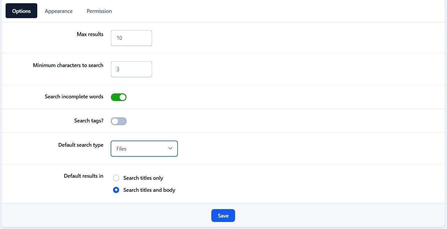 Set default search type for all pages
