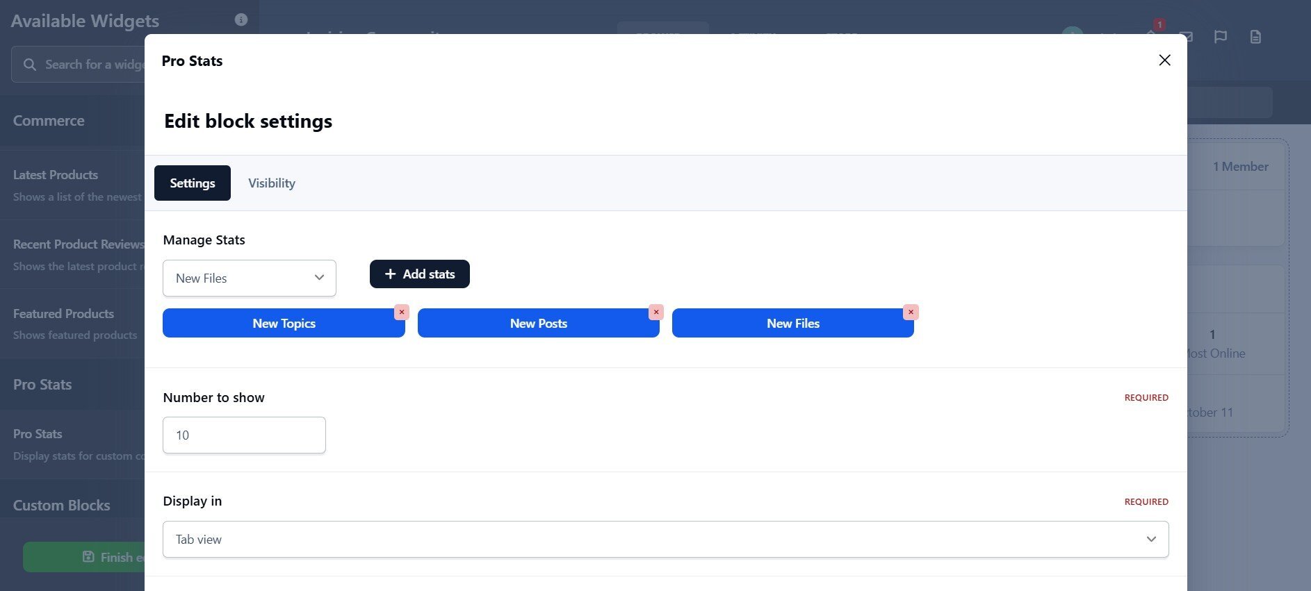 This app allows using Widget to display the statistic in your site. Members could see and update the newest information on that.